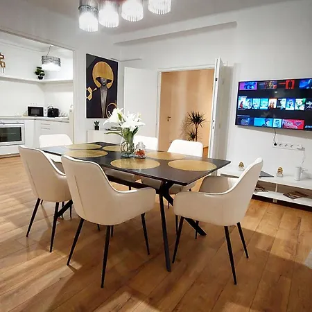 L'appartement offre une vue sur la ville et comprend un balcon et un vestiaire avec une climatisation. Cette propriété Central Station Lux Downtown Apartman dispose de 2 chambres à coucher. Pour plus de commodité, 1 salle de bain sont disponibles dans cet établissement. Un sèche-cheveux, des serviettes et des pantoufles sont accessibles.